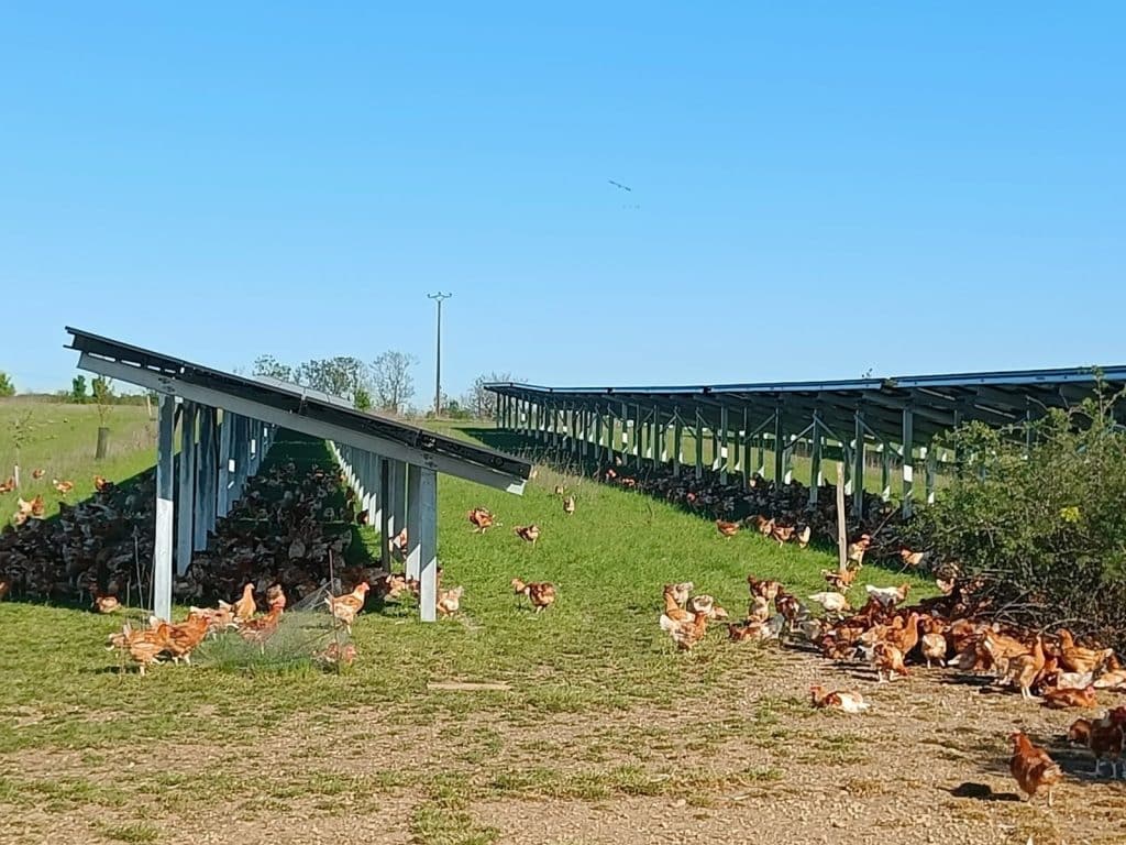 volailles sous panneaux solaires _ agrivoltaisme