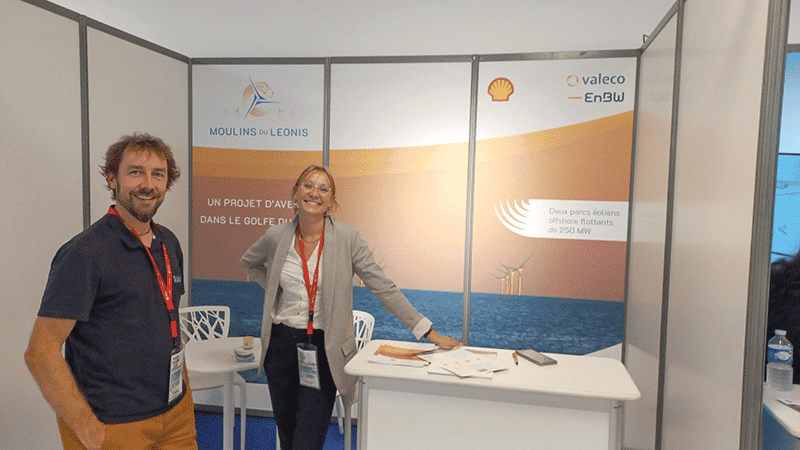 Les 18 et 19 octobre, le consortium Moulins du Leonis porté par Shell, Valeco et sa maison mère EnBW en lice pour l’attribution des projets éoliens flottants en Méditerranée, était ravi d’avoir pu présenter son projet lors du Salon du littoral au Cap d’Agde.